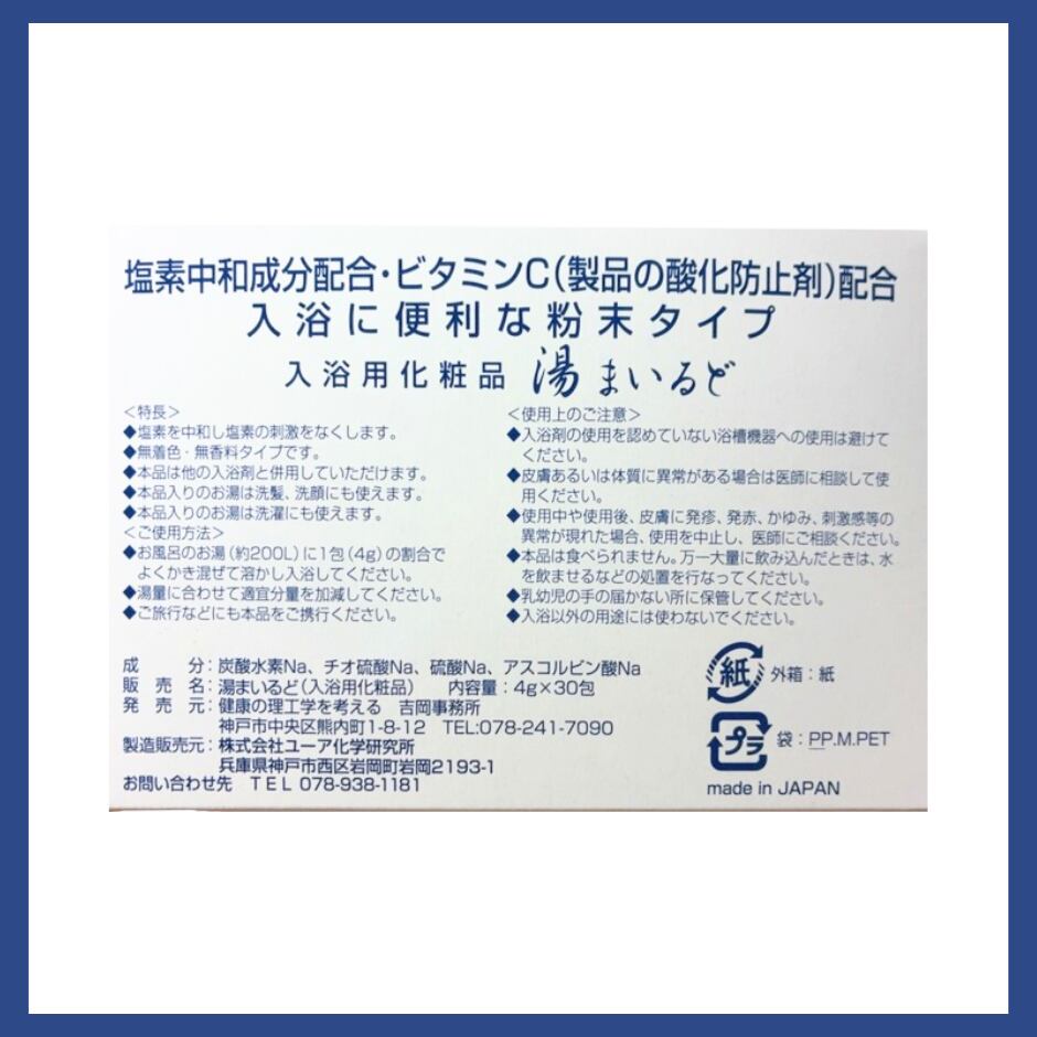 ・1包で家庭用の浴槽の1杯分以上の塩素を中和して無害にします。