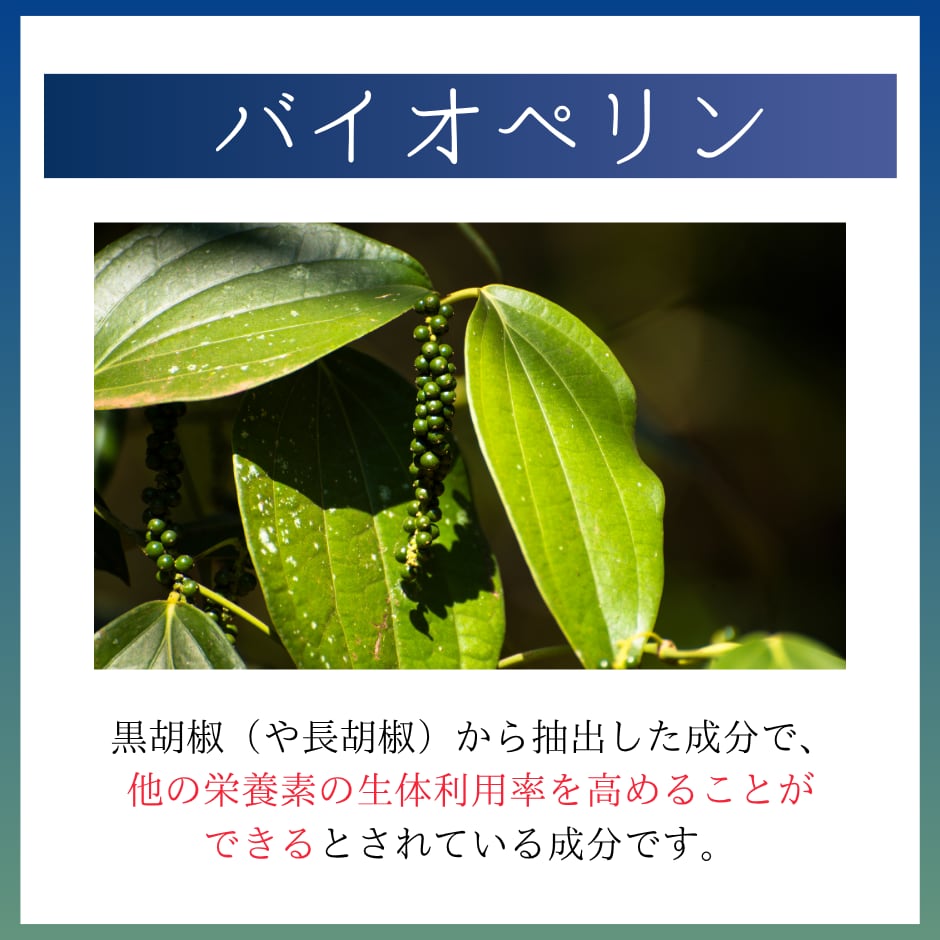 各成分の働きをバランスよく引き出すように【バイオペリン】を配合。