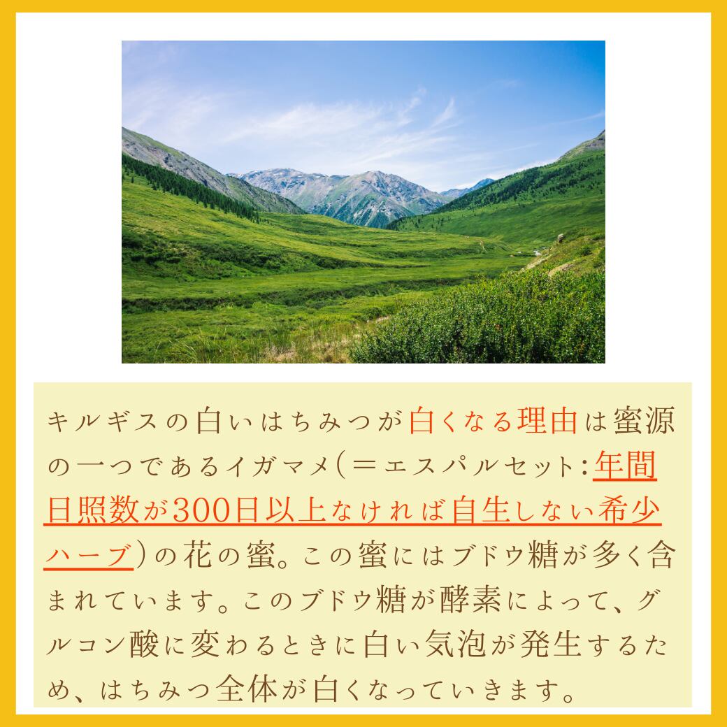 キルギスの白いハチミツ(非加熱・活性酵素・無農薬))